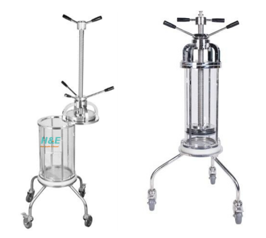 手動層析柱的工作原理是采用絲桿驅動上柱頭,使柱頭上升和下降;另外,通過小型旋轉輪作用于柱頭內腔中的驅動杠桿,使得其提升和下降,可促使柱頭外側的密封壓緊環實現密封圈的壓緊和松開,進而實現柱頭的密封和解除密封。 還可以通過柱管上法蘭的旋轉螺釘實現上柱頭的旋進和旋出,旋出時可以直接向柱管加入填料,同時可以清洗上篩網,晾干上篩網。旋進時可以直接旋轉絲桿,驅動上柱頭。 手動層析柱的工作原理是采用絲桿驅動上柱頭,使柱頭上升和下降;另外,通過小型旋轉輪作用于柱頭內腔中的驅動杠桿,使得其提升和下降。