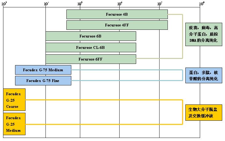 凝膠過濾介質分級分離范圍(球蛋白Da)