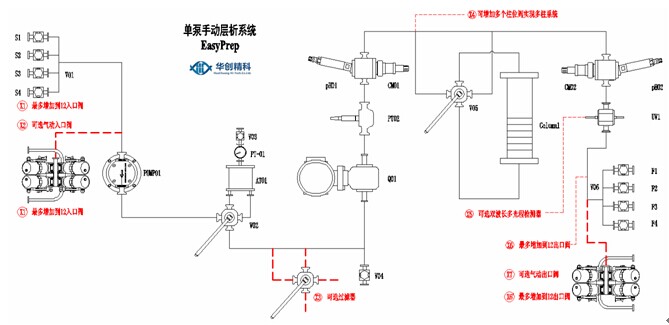 工作原理:層析系統是為流動相流量、壓力、溫度、pH值、電導率等常規工藝過程參數的提供檢測,并利用紫外光譜對有效成分含量的進行實時監測,最終完成藥品分類、自動實時收集,且能全過程跟蹤記錄工藝過程,實現對泵、部分閥門的控制、異常操作報警提示和數據采集,以保證工藝的穩定性和準確性。?