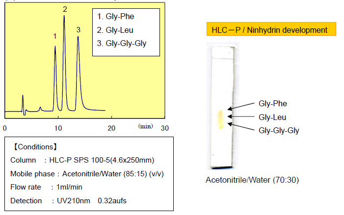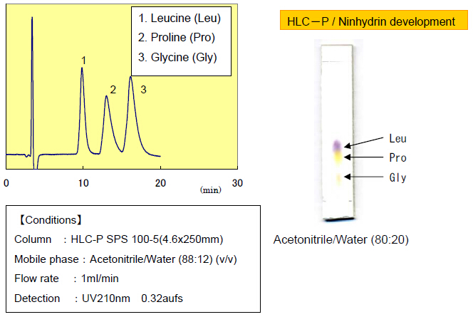 ????因此,對于極性化合物的洗脫,HILIC模式和反相模式是互補的。富士硅化學有限公司開發了兩款HILIC模式的填料,命名為“HLC”硅膠。兩種HLC硅膠都含有兩性的官能團,共價鍵合在硅膠表面?!?/span>HLC-A”用于分離純化有機酸、核酸和糖類;“HLC-P”用于分離氨基酸、多肽。