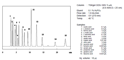 使用TOSOH公司的反相柱ODS-100V,就能同時分離各種有機(jī)酸。