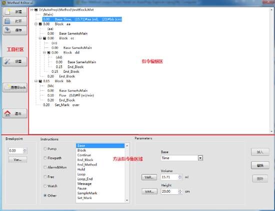 可以依據(jù)UV、電導(dǎo)值等實(shí)現(xiàn)自動收集;能夠自動保存臨時編輯的方法;可基于時間、體積、柱體積進(jìn)行自動流程運(yùn)行;采用Block的方法編輯方式,使得方法具有跳轉(zhuǎn)、中斷、嵌套的功能,加上強(qiáng)大的watch指令,能實(shí)現(xiàn)諸多功能,包括自動上樣、自動收集、檢測到氣泡自動切換等功能。