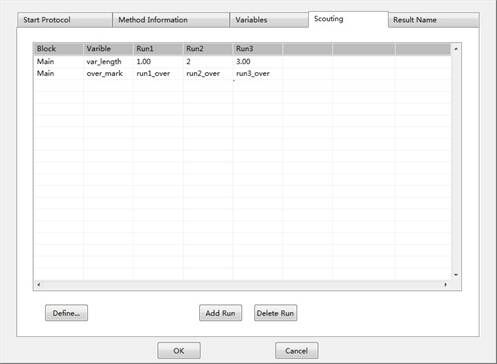 Scouting,即探索功能,通過將方法中的某些參數(shù)編輯成變量,然后通過Scouting設(shè)置,將同樣的方法運(yùn)行多次,每次僅僅是自動修改方法中的某個或某些參數(shù),從而實(shí)現(xiàn)參數(shù)的自動尋優(yōu),譬如尋找最適合的流速、尋找最適合的裝柱高度等。