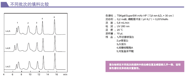 1. TSKgel SuperSW柱有內(nèi)徑為4μm的顆粒,能實現(xiàn)最高分辨率。窄至4.6mm內(nèi)徑的柱能在一定量的樣品質量范圍內(nèi)提高高靈敏度。
