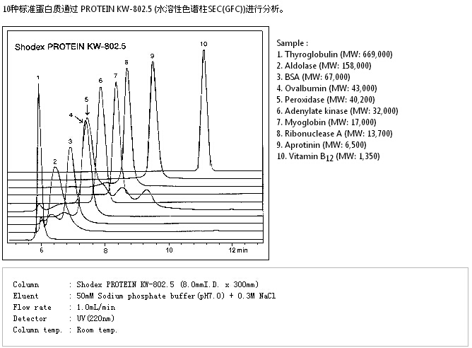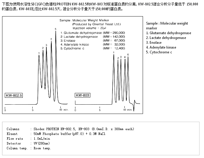 KW-802.5色譜柱是硅膠基質(zhì)的水溶性SEC色譜柱,適用于蛋白質(zhì)和酶的分析。