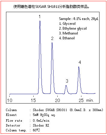 SUGAR SH1011色譜柱是以聚苯乙烯-二乙烯基苯為基質的,是對糖和有機酸同時分析的色譜柱。中性糖用尺寸排阻原理進行分離,有機酸是用離子排阻法進行分離的。主要適用于糖醛酸和醛糖酸的分析。