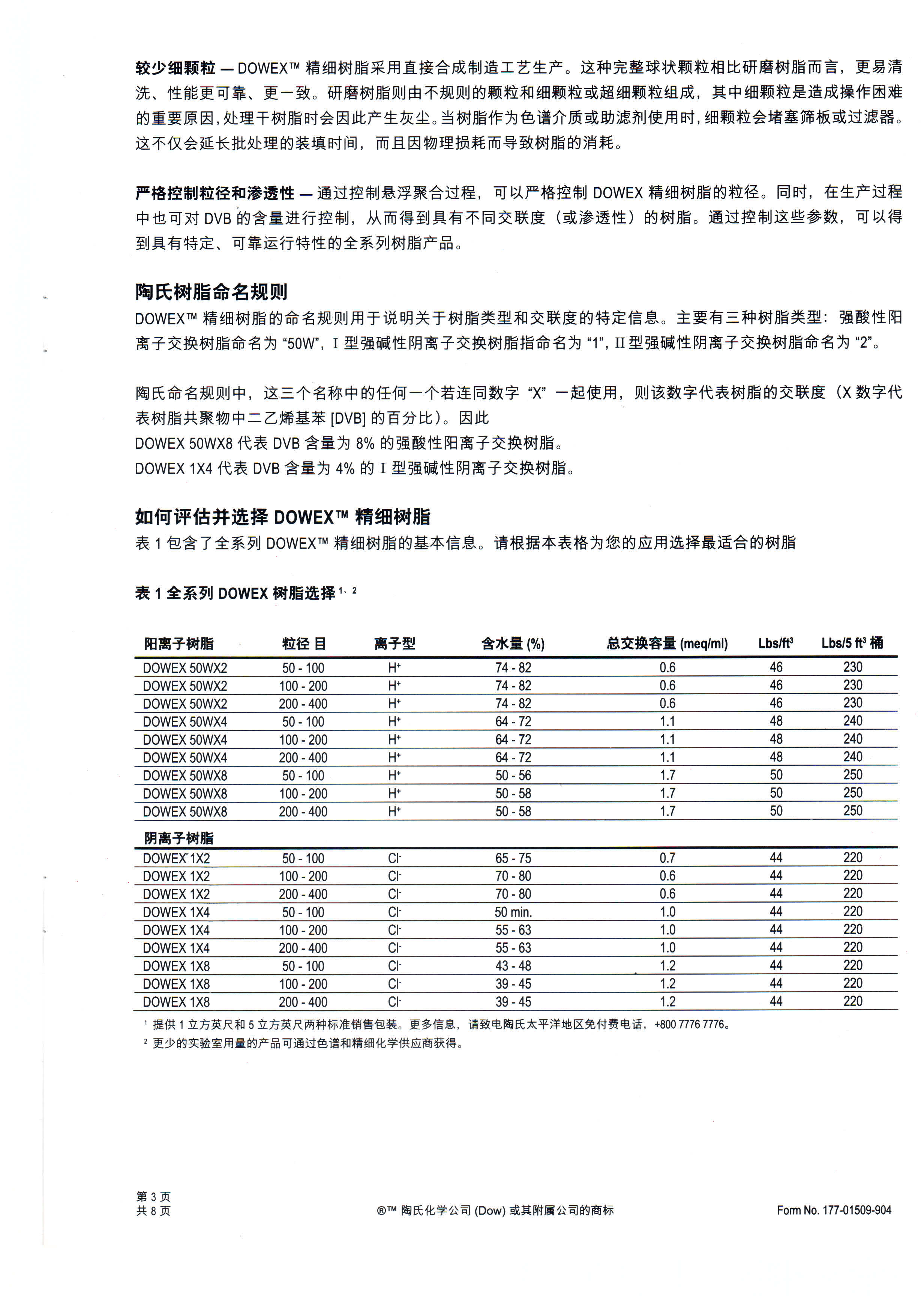 DOWEX1×8-1 | DOWEX1×8強(qiáng)堿性陰離子交換樹脂,50-100目 |