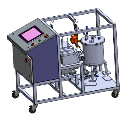 ? ?QuikSep AF中試型全自動(dòng)超濾系統(tǒng)是采用衛(wèi)生級(jí)隔膜泵或作為循環(huán)輸液?jiǎn)卧诒煤蟆⒛ぐ鼮V過端和回流端分別配壓力傳感器,配合回流端的氣動(dòng)比例調(diào)節(jié)閥實(shí)現(xiàn)恒定跨膜壓TMP,根據(jù)客戶工藝需要可選配在線流量計(jì)、UV、電導(dǎo)、pH,集成不銹鋼衛(wèi)生補(bǔ)液罐,罐體帶稱重、攪拌、噴淋頭在位清洗,配合蠕動(dòng)泵可現(xiàn)實(shí)自動(dòng)補(bǔ)液功能。
