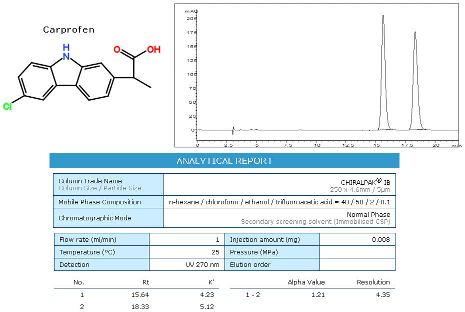 IB耐溶劑型手性柱,硅膠表面共價(jià)鍵合有纖維素-三(3,5-二甲基苯基氨基甲酸酯)。溶劑使用無(wú)限制,廣泛的溶解條件,可使用任何互溶的溶劑作為流動(dòng)相、溶解樣品、手性柱再生。
