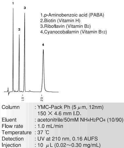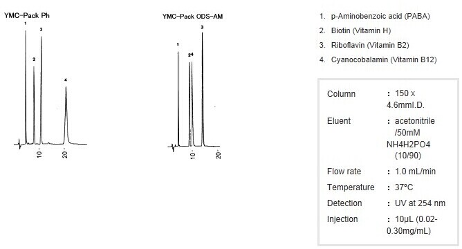 ODS和苯基柱分離水溶性維生素時候的保留時間有明顯的差異。